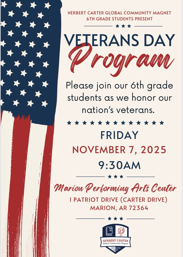 Join the HCGC family Friday, November 7, at 9:30 for a tribute to our Veterans. The performance will be help at the Marion Performing Arts Center.
